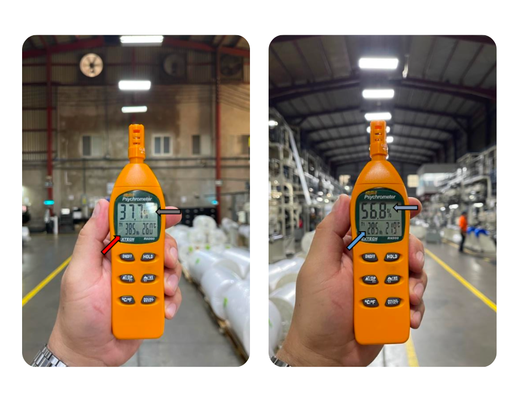 Con la instalación de 6 equipos BreezAir, el cliente obtuvo una temperatura ambiente menor a los 27°C, con el mínimo consumo de energía y agua posible.